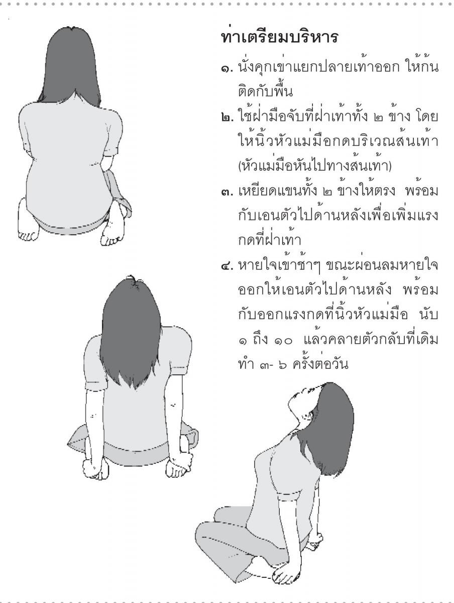 ผมจึงแนะนำให้ เธอใช้การเหยียบกะลามะพร้าว และใช้ทำท่าดัดตนแก้รองช้ำที่ผมเขียนมาในฉบับนี้ทุกวัน อาการจะดีขึ้น