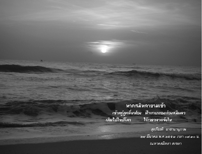 พักอยู่ที่โรงแรมริมหาดสมิหลา ๓-๔ วัน ทุกวันจะตื่นแต่เช้าออกไปเดิน-วิ่งออกกำลังกายที่ถนนเลียบหาด (ซึ่งทำเป็นสวนหย่อมและสวนสุขภาพ มีผู้คนออกมาเต้นแอโรบิก เล่นโยคะ วิ่งเหยาะ เดินเล่น) และถ่ายภาพตะวันทอแสงที่ขอบฟ้าเหนือทะเล เพลินกับธรรมชาติจนลืมเวลา ดังบทร้อยกรองข้างบนนี้