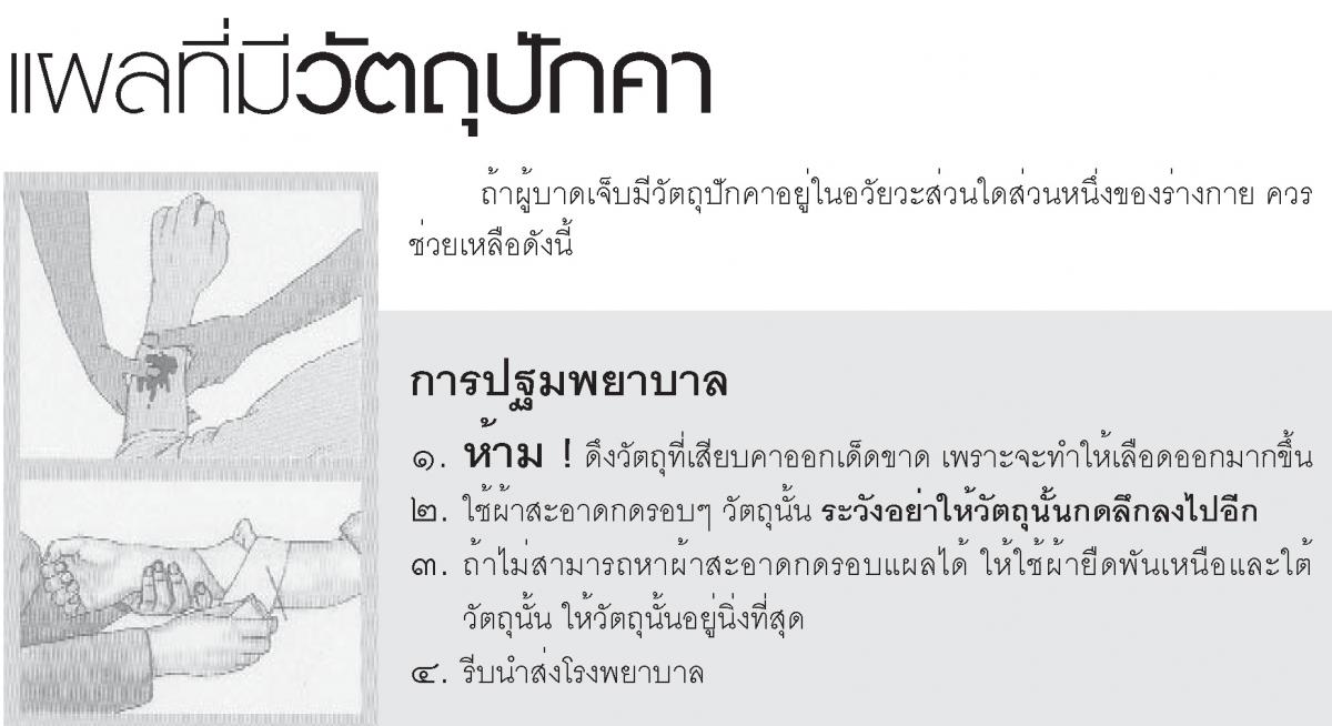 ถ้าผู้บาดเจ็บมีวัตถุปักคาอยู่ในอวัยวะส่วนหนึ่งส่วนใดของร่างกาย ควรช่วยเหลือดังนี้
