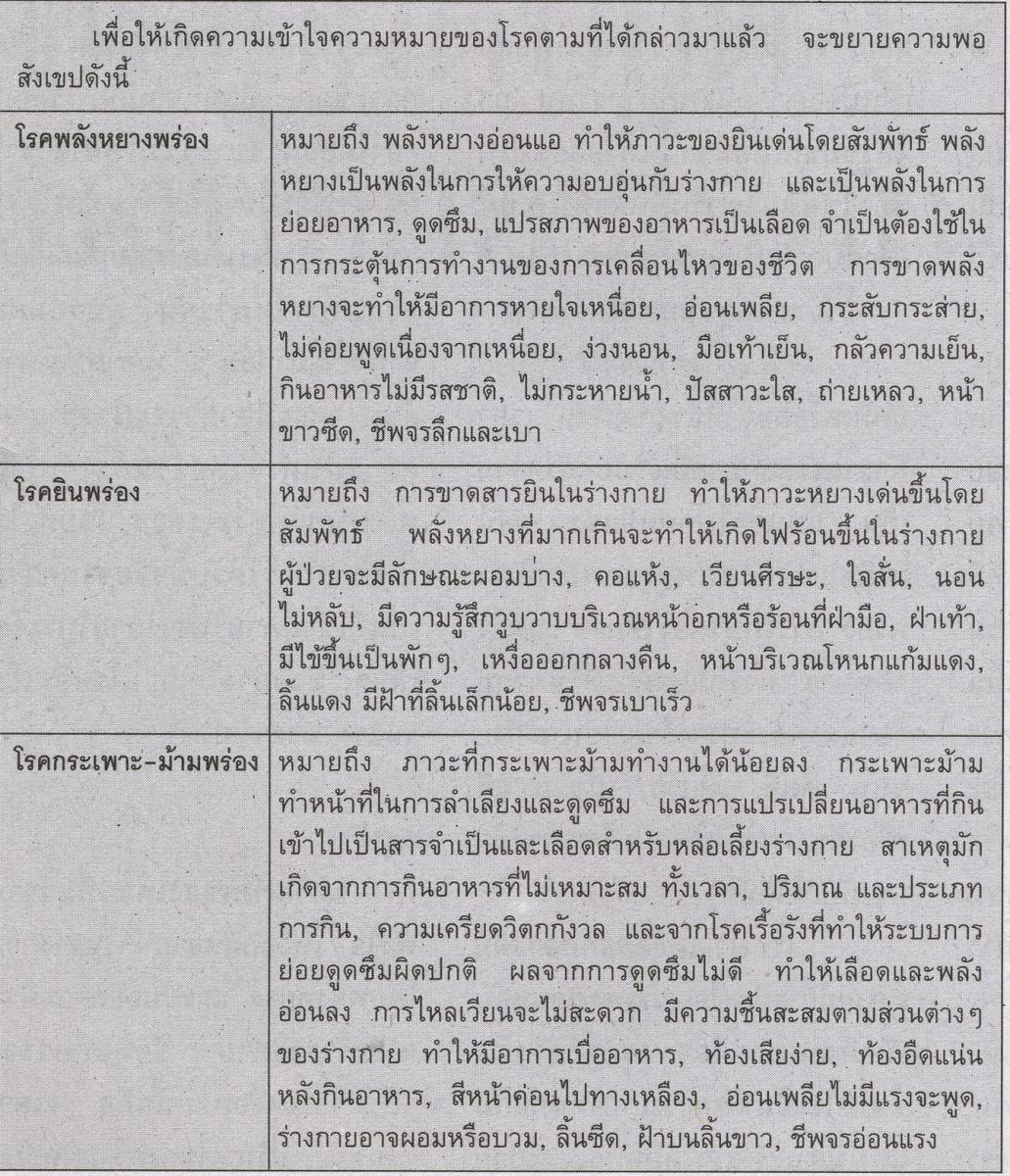 (๒.๑) เหงื่อออกง่าย ผู้ป่วยมักมีเหงื่อออกในช่วงกลางวัน เวลาทำงานจะออกมากขึ้น มักกลัวความเย็น, แขนขาไม่ค่อยมีแรง , อ่อนเพลีย มักมีสาเหตุจากพลังหยางพร่อง การรักษาต้องให้ยาบำรุงพลังไตหยาง ควรกินอาหารที่ให้ความร้อนและพลังแก่ร่างกาย เช่น ลำไย , ขนุน , ลิ้นจี่ , เนื้อวัว , เนื้อไก่ (ที่เมืองจีนบางครั้งใช้สมุนไพรบางตัวปรุงกับเนื้อสุนัข)