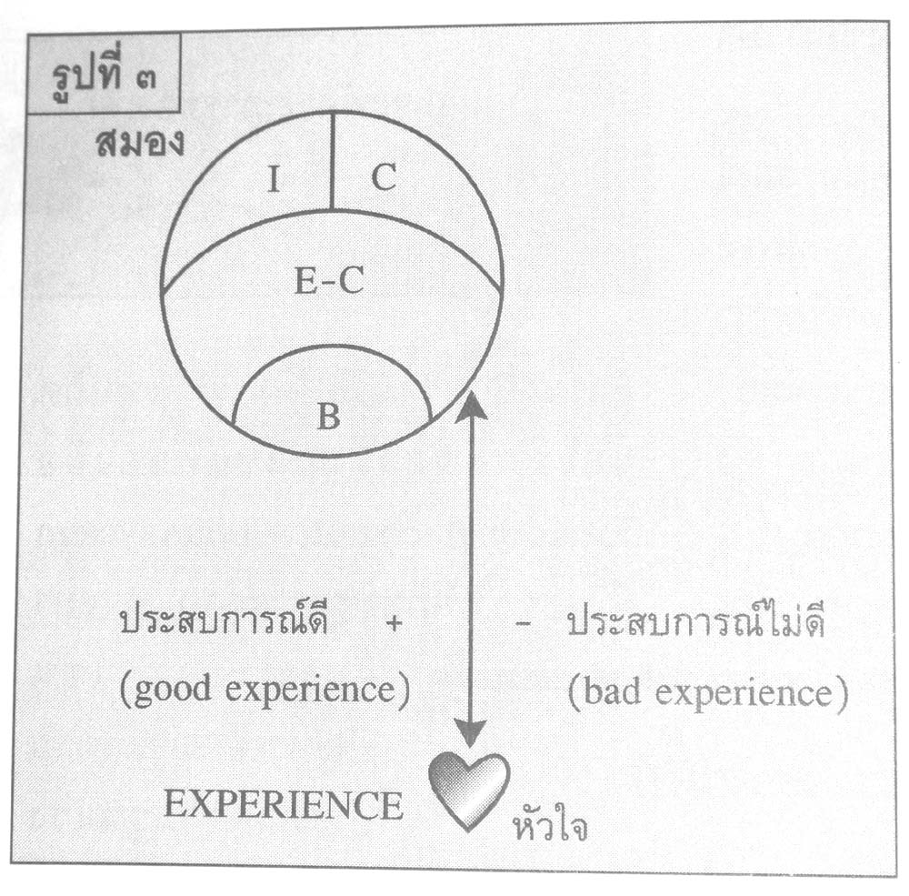 สติปัญญาของคนมาจากหัวใจ (Intelligence of the heart) ดร.เพรียส ค้นพบเรื่องนี้เมื่อไปทำสมาธิที่อาศรมในประเทศอินเดีย ปฏิสัมพันธ์ระหว่างสมองและหัวใจ (Interaction between heart and brain system) ทำให้เกิด (ดูรูปที่ ๓)