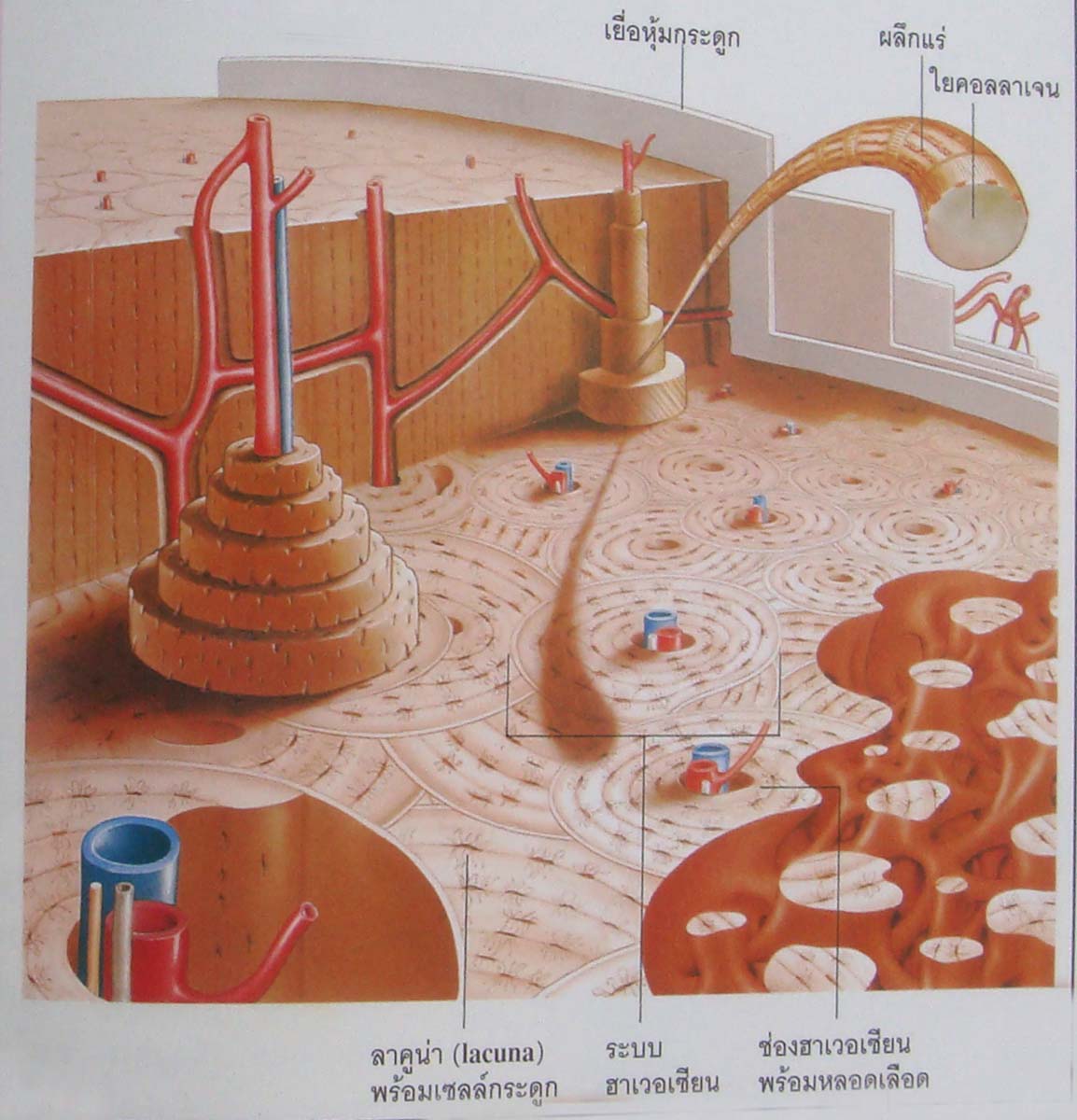 กระดูกของร่างกายเรามี ๒ ชนิด ชนิดหนึ่ง เป็นกระดูกแน่น เรียกว่า คอมแพกท์โบน (compact bone) เป็นกระดูกที่มีเนื้อละเอียดเหมือนหินอ่อน ส่วนอีกชนิดหนึ่งเป็นกระดูกที่มีรูพรุนเหมือนฟองน้ำ เรียกว่า แคนเซลลัสโบน (cancellous bone)