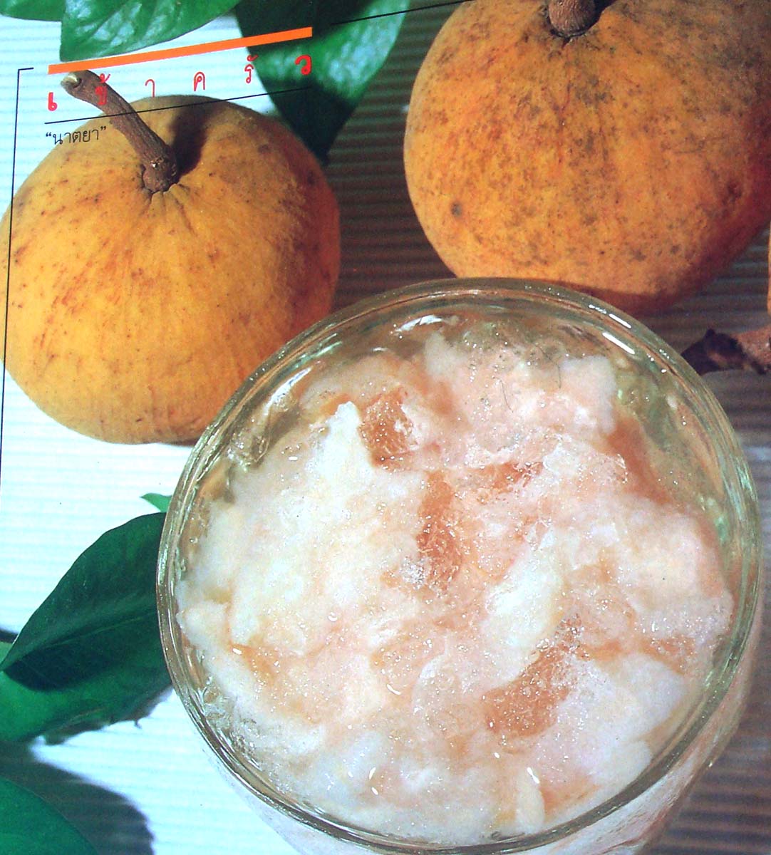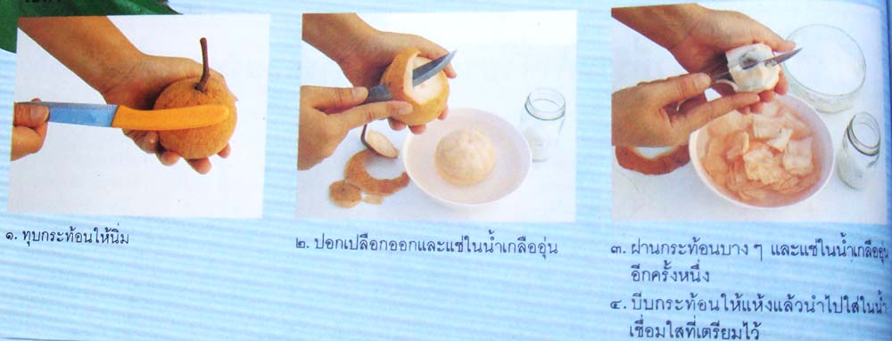 แต่ถ้าเป็นอุณหภูมิความร้อนในกายคุณที่เพิ่มขึ้นเพราะอากาศภายนอกที่ร้อนอบอ้าวราวกับอยู่ในเตาอบไมโครเวฟแล้วล่ะก็ ดิฉันพอจะมีเครื่องมือดับร้อนให้คุณได้ แถมอร่อยเสียด้วยสิคะ ก็กระท้อนลอยแก้วในถ้วยที่วางอยู่ข้างๆนี่ไงคะ ด้วยรสชาติที่หวานอมเปรี้ยวนิดๆ ผสมกับน้ำแข็งทุบที่เติมลงไป เท่านี้คุณก็จะได้กระท้อนลอยแก้วที่ทั้งหวานและเย็นชื่นใจ ซึ่งจะช่วยดับความร้อนในกายได้เป็นอย่างดี