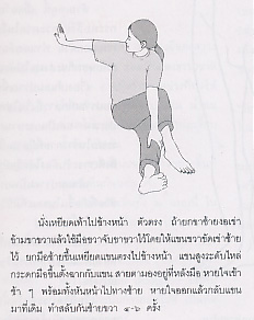 ผมให้เขานอนหงายชันเข่าขึ้นทั้งสองข้าง แล้วใช้มือกดที่หัวตะคากทีละข้าง โดยนับ ๑-๑o แล้วยกมือขึ้น เขาบอกว่าดีขึ้นมาก แล้วผมให้เขาหัดทำท่าฤาษีดัดตนด้วยตนเองด้วยท่าที่ผมเขียนมานี้ เพื่อให้เขาได้ช่วยตัวเองเวลาปวดหลังขณะที่เขาอยู่เมืองนอก