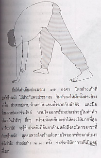 ผมบอกให้เขายืนแยกขาห่างกันพอควรแล้วค่อยๆก้มตัวลงให้มือแตะพื้น ทำเหมือนท่าดัดตนข้างๆนี้