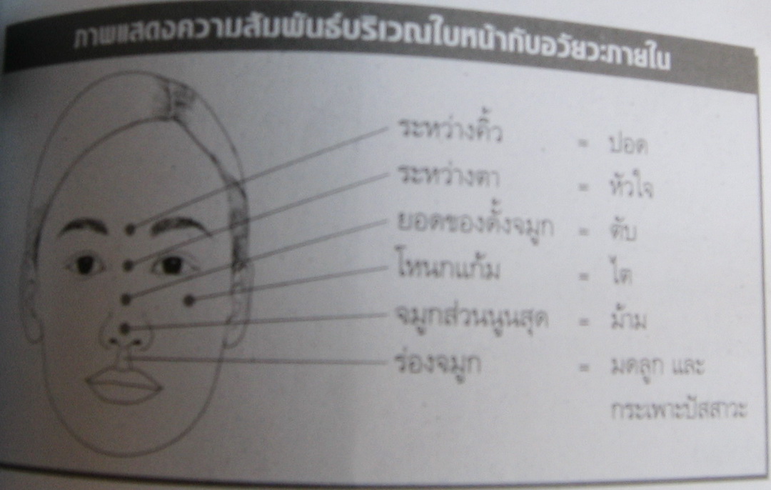 ถ้าพิจารณาบริเวณร่องจมูกจะสัมพันธ์กับมดลูกและกระเพาะปัสสวะ ซึ่งเกี่ยวกับระบบไต การสืบพันธ์นั่นเอง