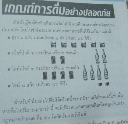 | เบียร์ เท (ale) เบียร์ทำในประเทศไทย เหล้าองุ่น เชอรี่และพอร์ต สุรา (แม่โขง, หงส์ทอง) วิสกี้ บรั่นดี ยิน รัม | 4-6 6-8 06-12 10-15 15-20 20-35 40-50 50-60 |
