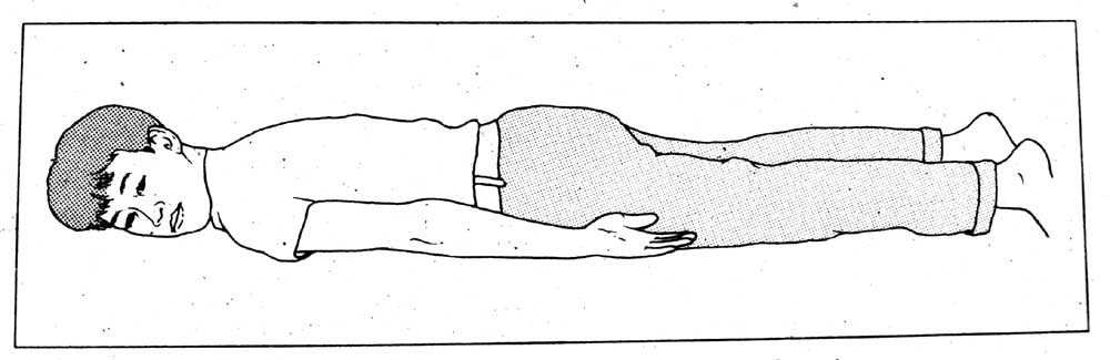 ท่าที่ 1 นอนคว่ำมือและแขนเก็บไว้ข้างลำตัว หน้าหันไปข้างใดข้างหนึ่ง หายใจเข้าลึกๆ แล้วค่อยๆ ผ่อนออกช้าๆ ท่านี้จะช่วยผ่อนคลายกล้ามเนื้อที่เกร็งแข็งจากการอักเสบ