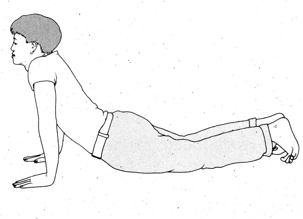 ท่าที่ 2 อาจทำต่อเนื่องจากท่าแรกหลังจากกล้ามเนื้อคลายตัวเต็มที่ ค่อยๆ ใช้แขนพยุงตัวขึ้นเพื่อให้หลังแอ่นตามรูป