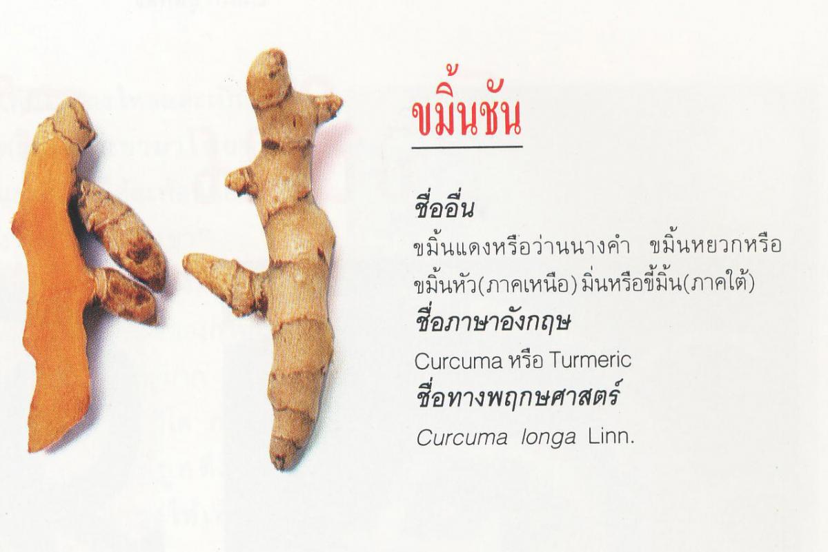 ก. ขมิ้นชัน บางทีเรียกขมิ้นแดง หรือว่างนางคำ ภาคใต้เรียก มิ่น หรือขี้มิ่น ภาษาอังกฤษเรียก Cur-
