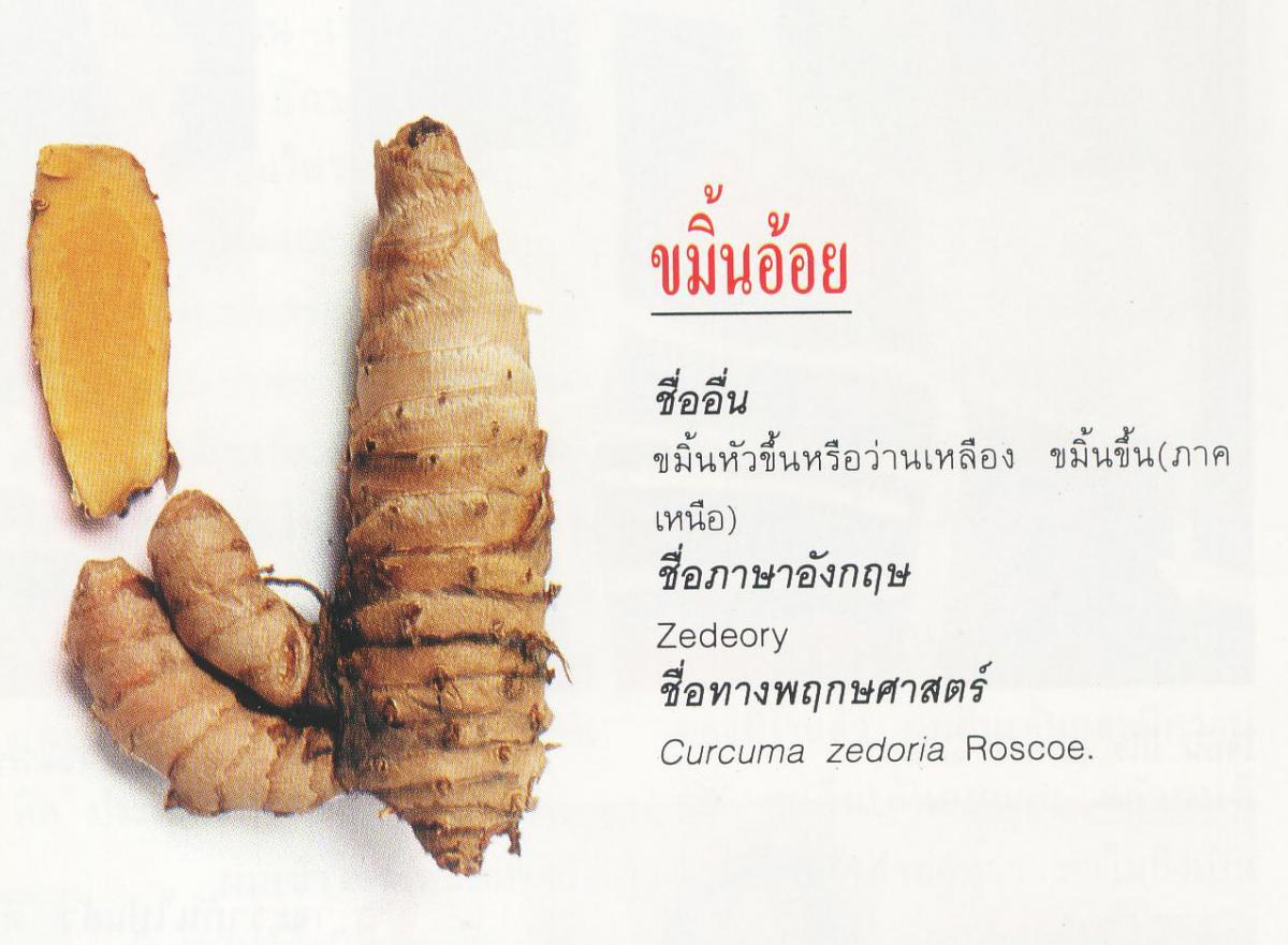 ข. ขมิ้นอ้อย บางทีเรียกขมิ้นหัวขึ้นหรือว่านเหลือง ภาคเหนือเรียกขมิ้นขึ้น ภาษาอังกฤษเรียก Ze-
