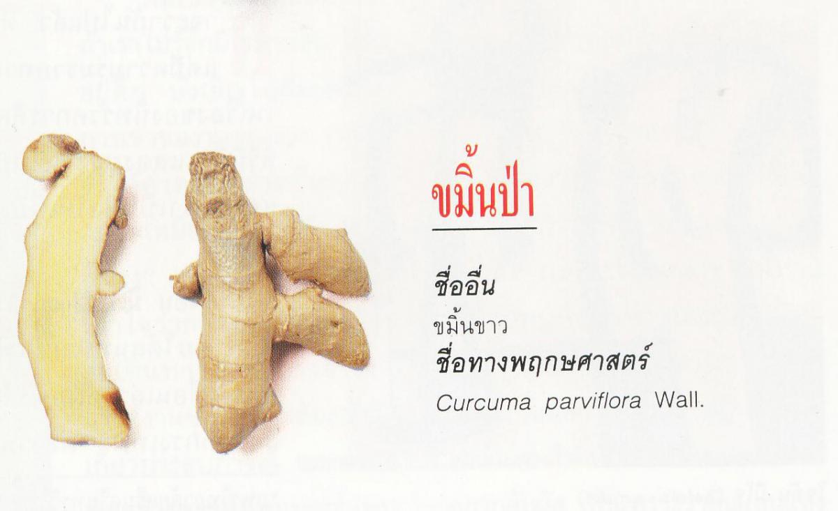 ค. ขมิ้นป่า บางทีเรียกขมิ้นขาวชื่อทางพฤกษาศาสตร์คือ Curcuma parviflora Wall. ลักษณะคล้าย