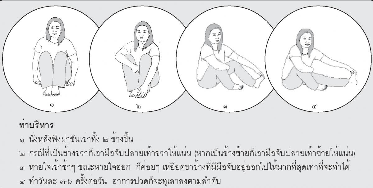 หลังจากซักถามคนไข้ถึงสาเหตุและอาการแล้ว ผมจึงให้คนไข้ทำท่าดัดตนแก้เส้นมหาสนุกนิ์ระงับที่ผมเขียนมานี้ หลังจากนั้นเขาก็อาการดีขึ้น แม้อาการปวดจะยังคงอยู่เล็กน้อยแต่สามารถเดินโดยที่สะโพกและไหล่ตรงได้แล้ว