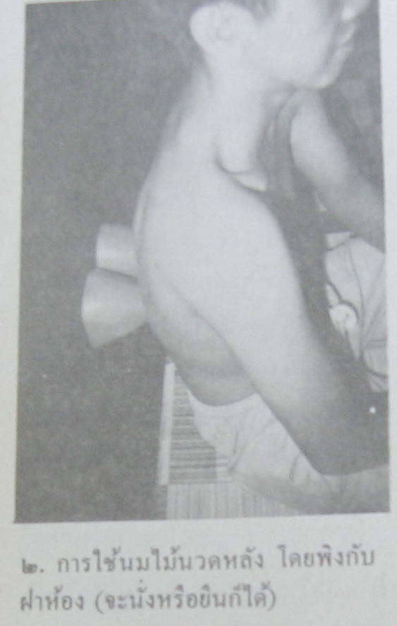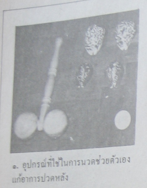 ดังนั้น ถ้าจะนวดด้วยตัวเองควรจะหาอุปกรณ์ดังที่กล่าวมาแล้วคือ กะลา ลูกกอล์ฟ หรือนมไม้ ถ้าไม่มีจริงๆหาขวดที่มีความแข็งแรง บรรจุน้ำอุ่นๆ พอทนได้นอนทับแทนก็ได้