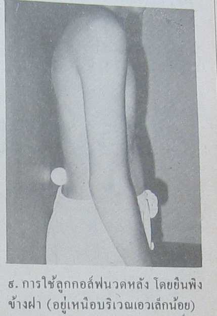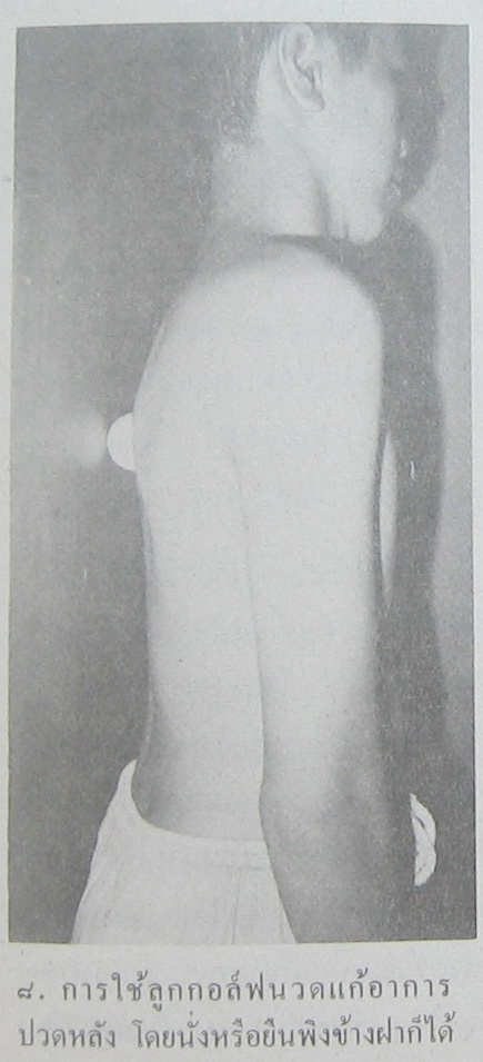 ลูกกอล์ฟ เป็นอุปกรณ์อีกชนิดหนึ่งที่ใช้ในการนวดหลังได้ ลูกกอล์ฟมีลักษณะกลม แข็ง อาจจะนอนทับและปล่อยให้มันไถลไป หรือว่าจะเคลื่อนตัวไปเรื่อยๆ ตามความยาวของห้องหรือบริเวณที่เราทำการนวดอยู่