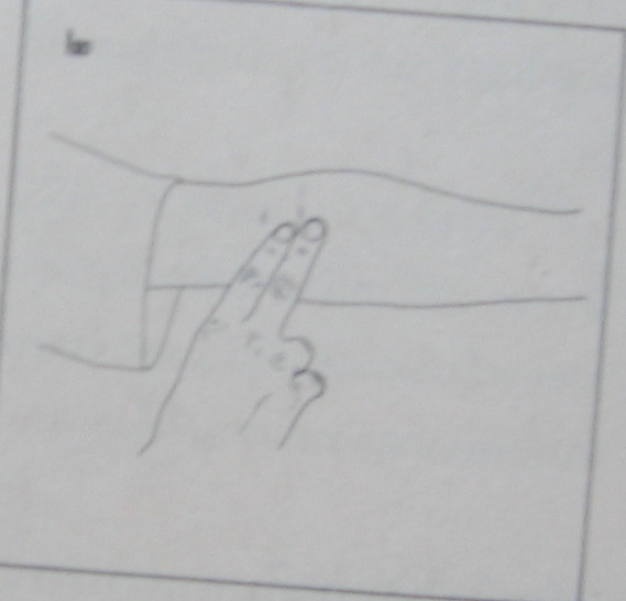 3. ที่คอ ใช้นิ้วชี้และนิ้วกลางของมือข้างที่ถนัดคลำที่ลูกกระเดือก แล้วเลื่อนนิ้วมือลงมาที่ข้างๆของลูกกระเดือก จะพบร่องเกิดจากขอบของกล้ามเนื้อคอ และแผ่นกระดูกอ่อนของลูกกระเดือก ตรงร่องนี้มีเส้นเลือดใหญ่ที่ไปเลี้ยงสมองทอดอยู่ ซึ่งจะคลำชีพจรได้ตรงนั้นทั้งสองข้าง