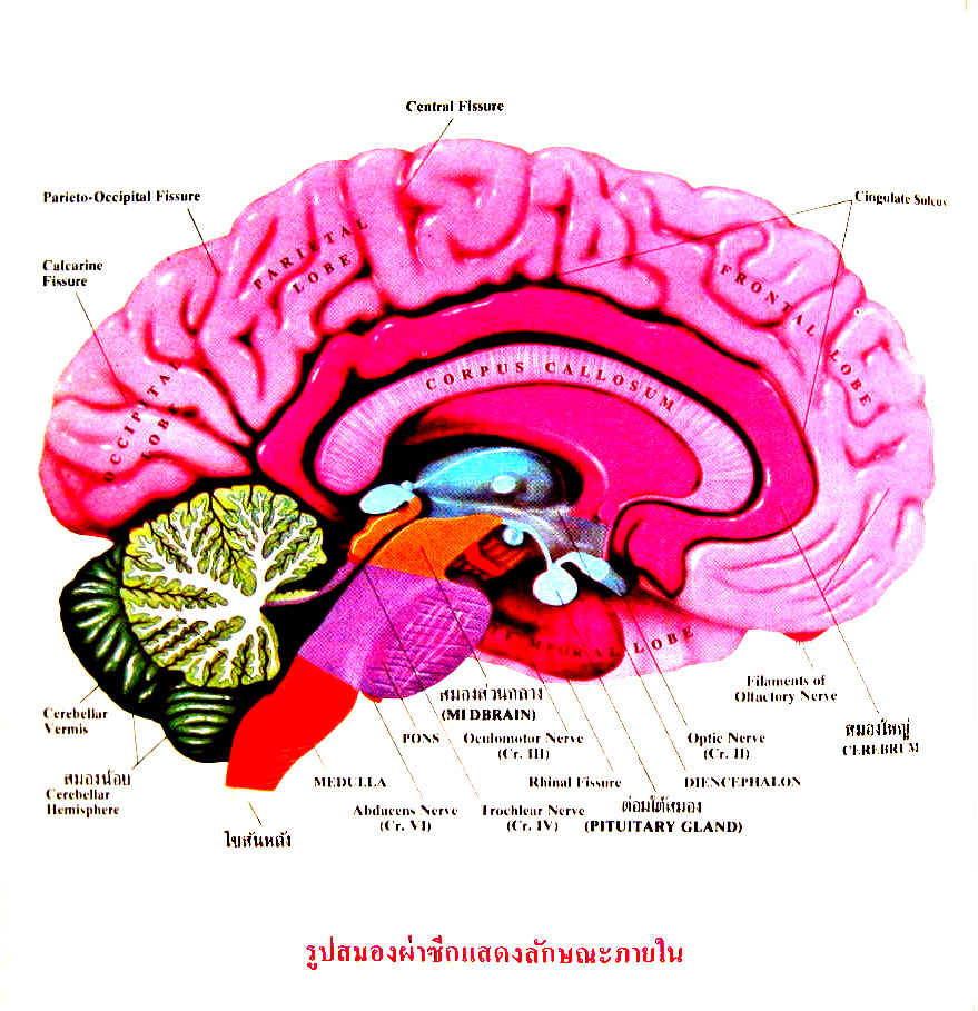 สมองคนเราก็เป็นศูนย์อำนวยการที่มีเส้นใยประสาทเต็มไปหมดเหมือนกับสายไฟในเครื่องรับโทรทัศน์ หรือเครื่องอีเล็คโทรนิค ซึ่งเชื่อมโยงระหว่างหลอดทรานซิสเตอร์ต่าง ๆ ทำหน้าที่เป็นศูนย์รวมข่าว สมองสามารถแบ่งเป็นศูนย์ต่าง ๆ มากมายดังจะกล่าวถึงย่อ ๆ คือ