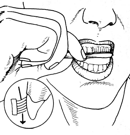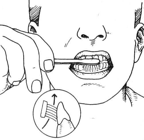 ฟันบน ( นอกและใน )ให้ปัดลง