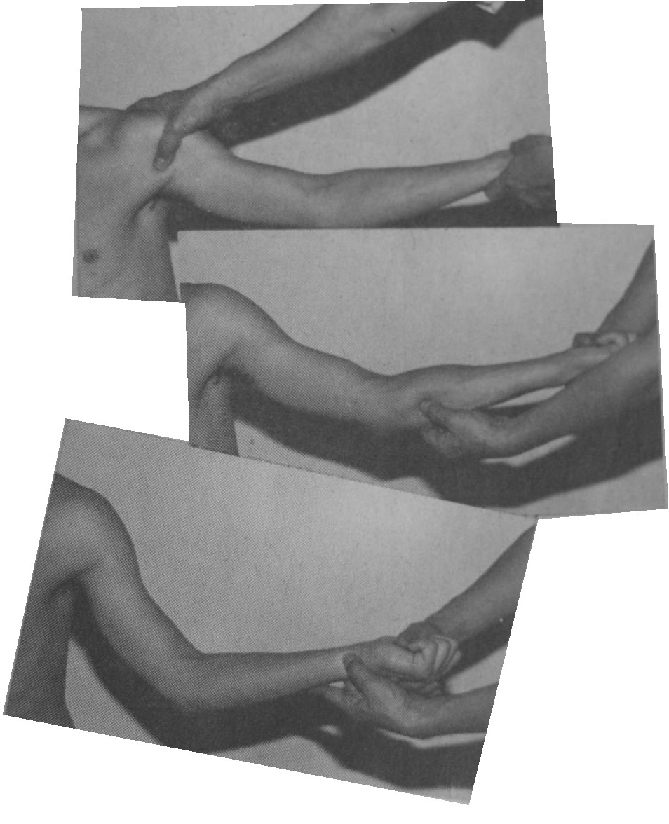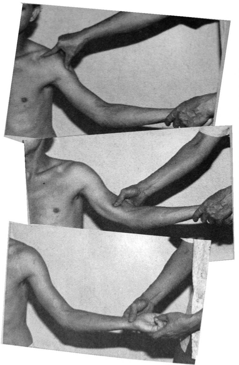 จุดสุดท้ายที่ควรกดคือ บริเวณที่เป็นบานพับของข้อศอกด้านหน้า โดยให้กดตั้งแต่บริเวณกึ่งกลางของบานพับลงมาที่ข้อแขน กดจุดแต่ละจุดให้ห่างกันประมาณ 3 นิ้ว ให้นิ่งและนานประมาณ 10 วินาที และกดซ้ำประมาณ 3-5 เที่ยว ให้ตลอดแนว เพื่อให้เส้นและกล้ามเนื้อต่างๆในบริเวณที่กดได้ยืดและเป็นการคลายความเครียดของกล้ามเนื้อต่างๆอีกด้วยหลังจากที่กดจุดต่างๆแล้ว ควรจะบีบนวดเบาๆหรือใช้ผ้าชุบน้ำอุ่นประคบบริเวณที่กดด้วยจะช่วยให้อาการปวดแขนหายเร็วยิ่งขึ้น และช่วยทำให้เลือดลมแล่นดีอีกด้วย