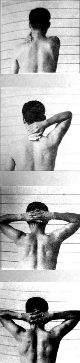 อีกวิธีหนึ่งโดยการเอาสมุดหรือหนังสือเล่มหนาๆหนักพอประมาณวางไว้บนหัวแล้วปล่อยมือเดินเป็นทางตรงหรือเดินเป็นวงกลมก็ได้ การบริหารด้วยวิธีการดังกล่าวจะทำให้กล้ามเนื้อและเส้นเอ็นตรงบริเวณต้นคอแข็งแรง