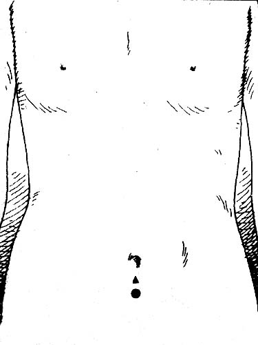 อยู่ต่ำกว่าสะดือประมาณ 2-3 นิ้วมือ