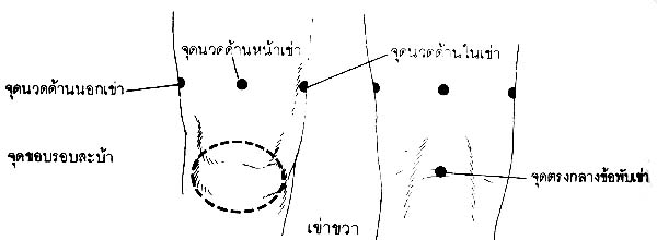 ภาพแสดงตำแหน่งจุดนวดกล้ามเนื้อเข่า