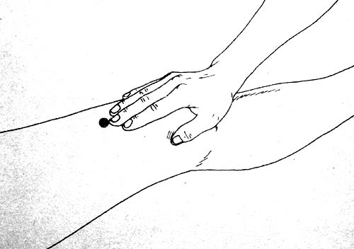จุดนวดจะอยู่ประมาณปลายนิ้วกลาง