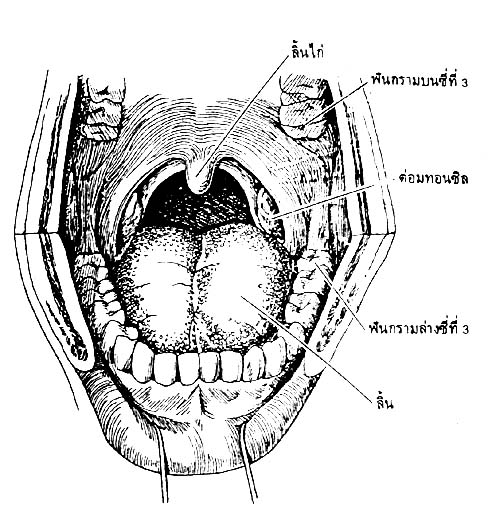 การตรวจคอหอยนี้ อาจจะให้หมอ (หรือผู้ที่อ่าน “มาเป็นหมอกันเถิด” และปฏิบัติได้แล้ว) ตรวจ หรือจะตรวจเองโดยยืนอ้าปากหน้ากระจกเงา แล้วดูเงาของคอหอยตนองในกระจกเงานั้น