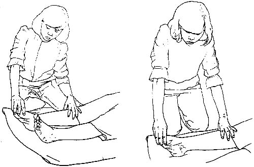 - ผู้นวดอยู่ในท่านั่งหรือคุกเข่า