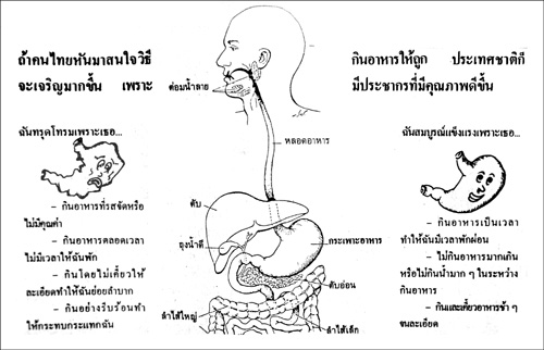 ถ้าเรามีรถคันใหม่สักคันหนึ่งเราคงจะเลือกใช้น้ำมันเครื่องที่เราคิดว่าที่ดีที่สุดกับรถของเรา แต่เวลาให้อาหารสำหรับร่างกายของเราเอง เรามักไม่ค่อยคำนึงถึงว่าจะกินอาหารอะไรจึงจะดีที่สุดและมีคุณภาพที่สุดถ้าร่างกายของเราไม่ได้รับอาหารที่มีคุณภาพ ร่างกายก็จะทรุดโทรมเร็วขึ้นเหมือนกับรถยนต์ที่ไม่ได้น้ำมันถูกต้องตามที่คู่มือระบุไว้ เรามักจะบ่นว่าอ่อนเพลียไม่มีแรงทำงาน เจ็บป่วยบ่อยๆเราลืมคิดถึงสาเหตุของการเกิดโรคต่างๆอาจจะเป็นเพราะการกินอาหารไม่ถูกต้อง