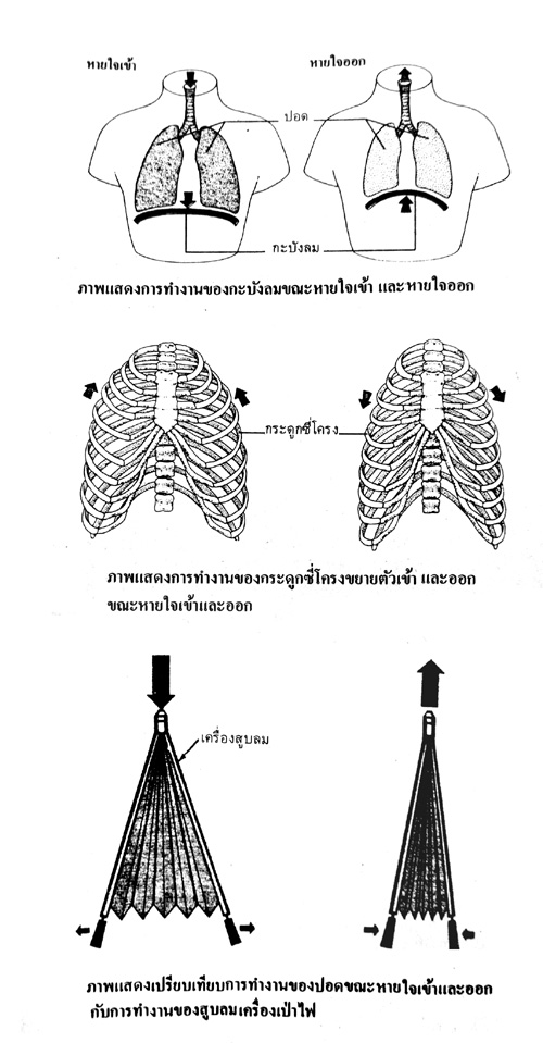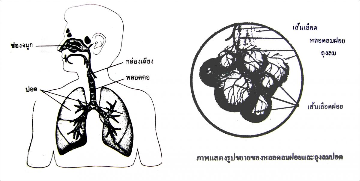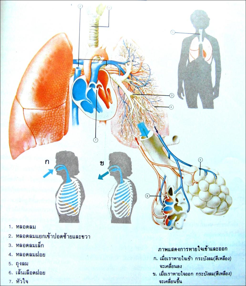 ปอดของเรามี 2 ข้าง ซ้ายและขวา อยู่ในทรวงอก ปอดมีอากาศบรรจุอยู่ เมื่อเราหายใจเข้าปอด ปอดจะขยายออก เมื่อหายใจออกปอดก็จะหดลง การที่ลมเข้าและออกจากปอดได้นั้น เกิดขึ้นเพราะการขยายและบีบตัวของทรวงอก กลไกที่กล่าวมาคล้ายกับสูบลมที่ใช้เป่าไฟ เมื่อกะบังลมลดตัวลงและกระดูกซี่โครงขยายตัวออก อากาศก็จะไหลเข้าสู่ปอดโดยอาศัยแรงดันของบรรยากาศโลก ก็เหมือนกันกับการที่ลมเข้าสู่สูบลมเมื่อดึงมือจับทั้งสองให้ห่างออกจากกัน เมื่อหายใจเข้าเต็มที่แล้ว กล้ามเนื้อกะบังลมคลายตัว ทำให้กะบังลมถูกดันสูงขึ้นในขณะที่กระดูกซี่โครงก็ยุบตัวเป็นผลให้ทรวงอกแฟบลงบีบปอดให้ปล่อยอากาศออกไป เหมือนกับการหุบมือจับของสูบลมเข้าหากันเราควรฝึกหายใจให้ลึก ๆ เป็นนิสัยเพื่อให้ได้ออกซิเจนเข้าไปให้ร่างกายได้ใช้แต่ละครั้งเป็นจำนวนมาก ๆปอดมีน้ำหนักเบา เนื้อปอดมีลักษณะคล้ายฟองน้ำ ประกอบด้วยถุงลมเป็นจำนวนมาก ถุงลมเหล่านี้เล็กมากต้องมองผ่านกล้องจุลทรรศน์จึงจะเห็น ถุงลมนี้มีผนังบางประกอบด้วยเซลล์ปอดและเนื้อเยื่อที่ยืดหดได้ ในช่วงหายใจเข้า ถุงลมจะพองออกให้อากาศเข้าไปเต็มถุง ในช่วงหายใจออก ถุงลมจะหดเล็กลง