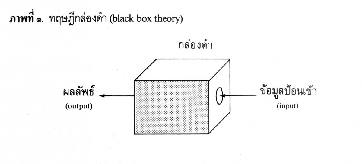 ถ้าเราใช้ทฤษฏีกล่องดำ (black box theory) มาอธิบายการศึกษาแบบนี้ก็จะได้ดังภาพที่ 1