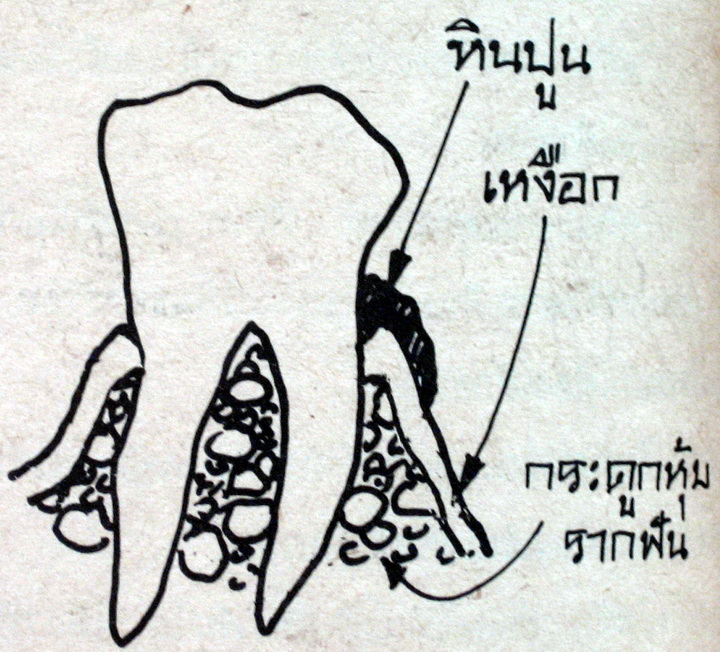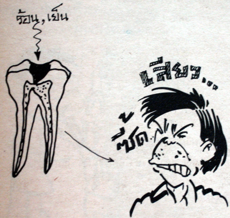 "เอาหล่ะ ขอดูหน่อยซิ ฟันกรามบนซี่นี้ผุมากเกือบถึงโพลงประสาทฟันแล้ว อย่างนี้กินของร้อนของเย็นรับรองมันต้องเสียวแน่ๆ"