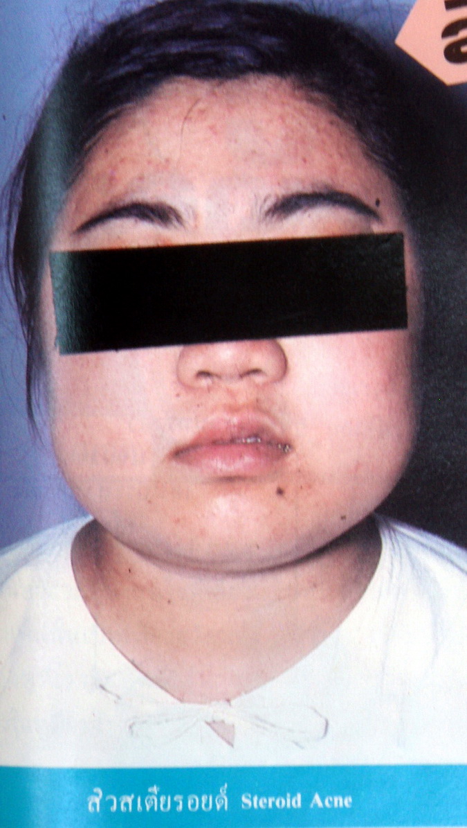 สิวแบบนี้เกิดจากยานั้นแน่นอน และยานั้นก็คือ สเตียรอยด์ เจ้าเก่าที่คุณผู้อ่านคงรู้จักกันดีแล้ว