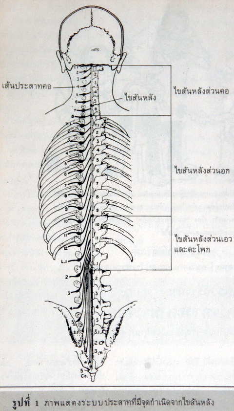 ไขสันหลังส่วนอก (Thoracic spinal cord) จะให้เส้นประสาทอก อกมา 12 คู่ เพื่อรับความรู้สึกต่างๆ และควบคุมการทำงานของกล้ามเนื้อในบริเวณแขนไหล่ ทรวงอก และท้องส่วนบน (ดูรูปที่ 1)