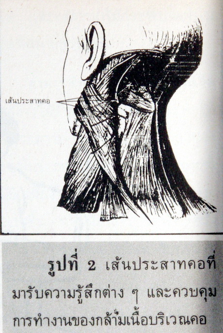 เส้นประสาทคอ จะรับความรู้สึกต่างๆ และควบคุมการทำงานของกล้ามเนื้อในบริเวณคอ ไหล่ แขน ทั้ง 2 ข้าง และอวัยวะภายในทรวงอก โดยเฉพาะกะบังลมที่ใช้ในการหายใจ (ดูรูปที่ 2)