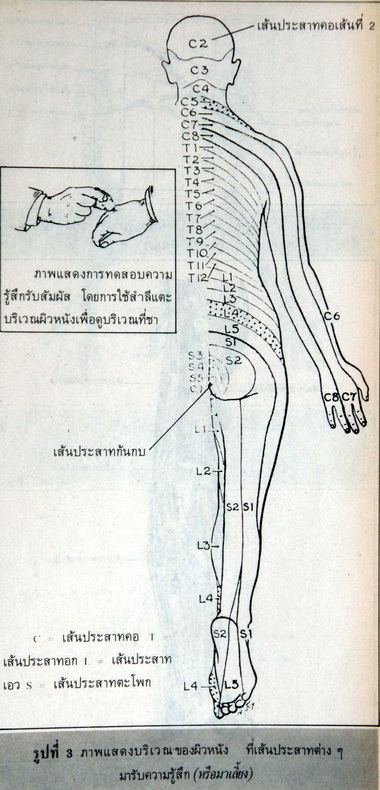 ถ้าตรวจพบมือและนิ้วมือส่วนใดชาหรือรับความรู้สึกไม่ได้จะเกิดจากเส้นประสาทเส้นใดเส้นหนึ่งผิดปกติหรือเป็นอัมพาต (ดูรูปที่ 6)