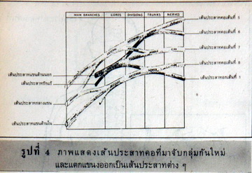 เส้นประสาทคอเส้นที่ 6, 7, 8 และบางส่วนของเส้นประสาทที่ 5 และของเส้นประสาทอก เส้นที่ 1 จะรวมตัวกันเป็นเส้นประสาทรักแร้และเส้นประสาทแขนด้านนอก เพื่อไปเลี้ยงบริเวณดังกล่าว(ดูรูปที่ 4)