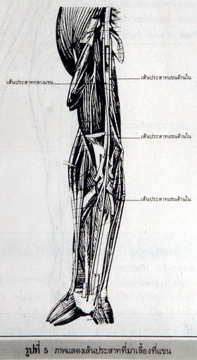 เส้นประสาทคอเส้นที่ 5, 7,8 และบางส่วนของเส้นประสาทอกเส้นที่ 1 จะรวมตัวกันเป็นเส้นประสาทกลางแขน และเส้นประสาทคอเส้นที่ 8 และเส้นประสาทอกเส้นที่ 1 จะรวมกันเป็นเส้นประสาทแขนด้านใน เพื่อเลี้ยงกล้ามเนื้อ เนื้อเยื่อผิวหนังในบริเวณนั้น (ดูรูปที่ 5)