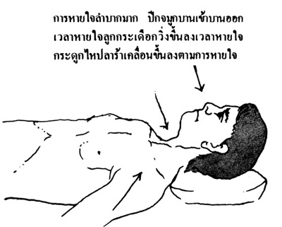 1. ให้คนไข้พักในท่าที่คนไข้สบายที่สุด เช่น ถ้าคนไข้นั่งแล้วสบายก็ให้นั่ง ถ้าคนไข้นอนหงายแล้วสบายก็ให้นอนหงาย ถ้าคนไข้นอนตะแคงแล้วสบายก็ให้นอนตะแคงเป็นต้น