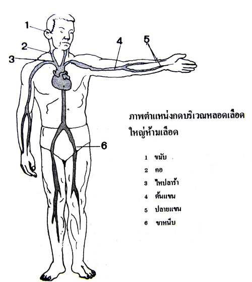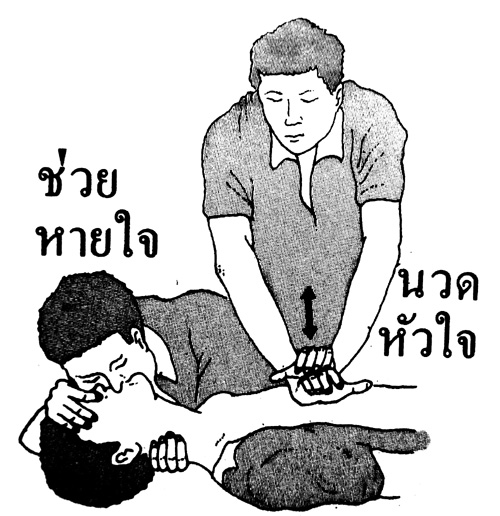 ถ้าคนไข้หมดสติทันทีและคลำชีพจรไม่ได้ ให้ช่วยแบบคนไข้หัวใจหยุดเต้น (ดูวิธีช่วยในฉบับก่อน)