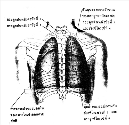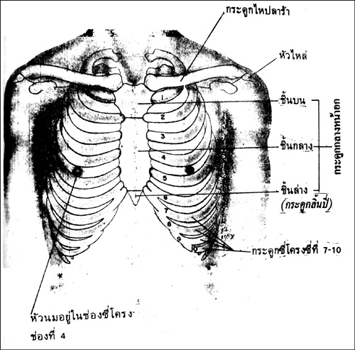 การนับกระดูกซี่โครงทางด้านหลัง ให้ใช้สะบักเป็นหลัก ในท่าห้อยแขนตามธรรมดา สันนูนตรงกลางด้านบนของกระดูกสะบักจะตรงกับกระดูกสันหลังอกข้อที่ 4 ส่วนมุมล่างของสะบักจะตรงกับกระดูกสันหลังข้อที่ 8 และกระดูกซี่โครงซี่ที่ 8 และกระดูกซี่โครงซี่ที่ 8 (ดูรูปที่ 2)