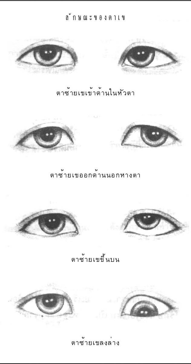 ตอบ จากรูปที่หนูส่งมาให้ดู ยังมองไม่ชัดว่าหนูมีตาเขตามที่หนูเข้าใจหรือไม่ เนื่องจากภาพถ่ายไม่ค่อยชัดเจน เท่าที่เห็นดูเหมือนจะไม่เข ถ้าจะเป็นก็คงเป็นตาเขเทียมมากกว่า อย่างไรก็ตาม ยังไม่อาจยืนยันจากรูปถ่ายที่แน่นอน หมอขอแนะนำให้หนูไปรับการตรวจจากจักษุแพทย์ที่อยู่ใกล้ๆ หนูอยู่โคราช โรงพยาบาล มหาราชนครราชสีมามีจักษุแพทย์ประจำหลายท่าน หนูน่าจะไปขอรับคำปรึกษาได้