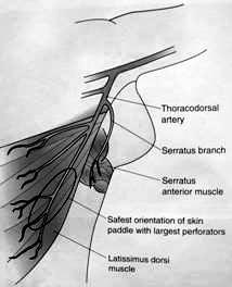 LD flap จะค่อนข้างทนทานต่อการขาด blood supply มีบางรายงานกล่าวว่า ยังสามารถใช้ flap นี้ได้อย่างปลอดภัย แม้ว่า thoracodorsal artery ถูกตัด เนื่องจากจะยังได้รับเลือดซึ่งไหลย้อนกลับจาก branch to the serratus arterior muscle.12