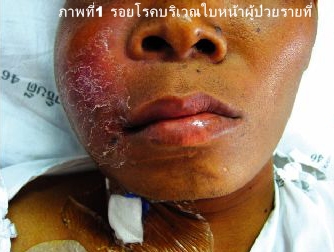 ชายอายุ 31 ปี เป็นโรคมะเร็งเม็ดเลือดขาว (leukemia) และรับยาเคมีบำบัด ครั้งสุดท้ายเมื่อ 3 สัปดาห์ก่อน. ผู้ป่วยมาพบด้วยอาการไข้ แก้มขวาบวมแดงมา 10 วัน ได้รับยา imipenem และ amikacin มา 7 วันอาการไม่ดีขึ้น ยังมีไข้สูง และปวด แก้มขวามากขึ้น เริ่มมีเลือดปนน้ำมูกไหลออกจาก รูจมูกขวา การตรวจร่างกายพบลักษณะใบหน้าดังภาพที่ 1.
