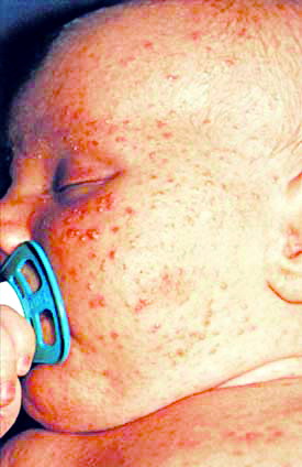 ภาพที่ 7. แผลเป็นจากสิวในทารก ภาพที่ 8. สิวจากเชื้อเกลื้อน