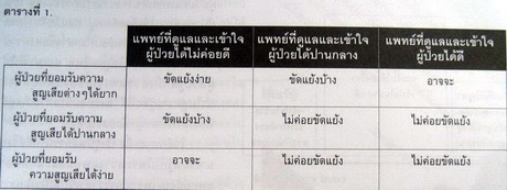 ผมเคยได้ยินแพทย์ท่านหนึ่งเล่าว่า มีแพทย์ จบใหม่บางคนที่ดุว่าผู้ป่วยจนผู้ป่วยร้องไห้เดินออกไป แต่หลังจากนั้น แพทย์คนนั้นก็ร้องไห้ และมองผู้ป่วยที่เดินจากไปผ่านหน้าต่าง โดยไม่เข้าใจตัวเองว่ากำลังทำอะไรอยู่ หลายครั้งความปรารถนาดีของแพทย์ได้กลายมาเป็นความขัดแย้ง เพราะแพทย์หลายคนไม่สามารถสื่อสารความปรารถนาดีของตนออกมาได้อย่างที่อยากให้เป็น.