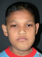 กระดูกขากรรไกรโตผิดปกติ (ภาพที่ 13) จนเกิดการอุดกั้นเป็นแบบเฉพาะตัวคือ มีฟันหน้าสบ ไม่สนิท (anterior open bite) และ class III occlusion.