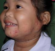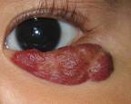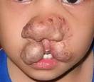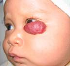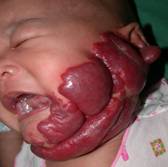 3. การอุดกั้นอวัยวะสำคัญ การเกิดก้อนบริเวณหนังตาทำให้บดบังการมองเห็น เกิด deprivation amblyopia (ภาพที่ 5) ก้อนที่โตใน subglottic อาจอุดกลั้นการหายใจได้.