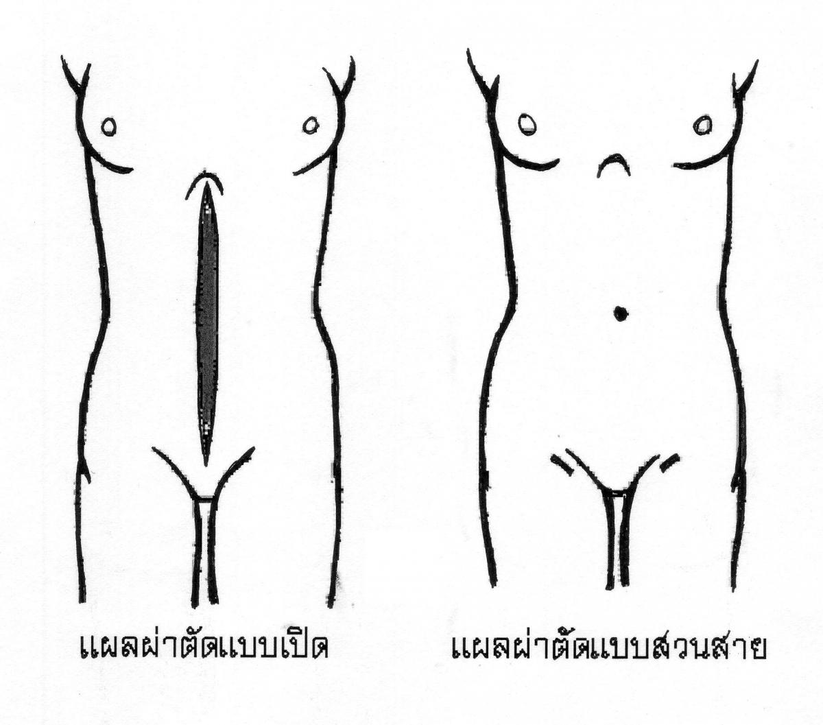1. หลีกเลี่ยงการมีแผลผ่าตัดยาวที่หน้าท้อง ทำให้ปวดแผลมากหลังการผ่าตัด (ภาพที่ 2).
